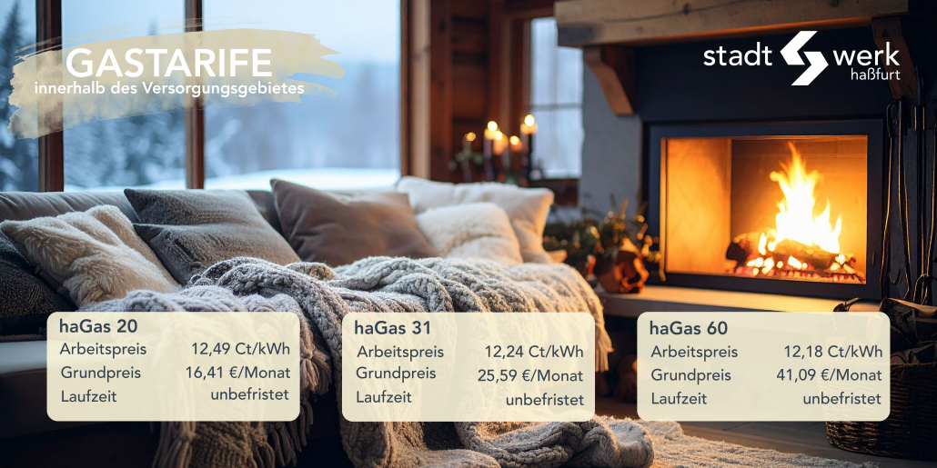 *Grundpreis inkl. Entgelt für Messstellenbetrieb (des gMSB Stadtwerk Haßfurt GmbH) und Abrechnung. Kann bei der Wahl eines anderen Messstellenbetreibers abweichen.