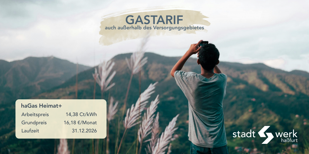 Ihre Möglichkeit sich aktiv an der Energiewende in Haßfurt zu beteiligen, mit einem minimalen Aufpreis im Vergleich zu unserem Tarif haGas 20! Der Betrag fließt direkt in die Förderung von Energiewendeprojekten (z.B. Power-to-Gas) in unserem Versorgungsgebiet.