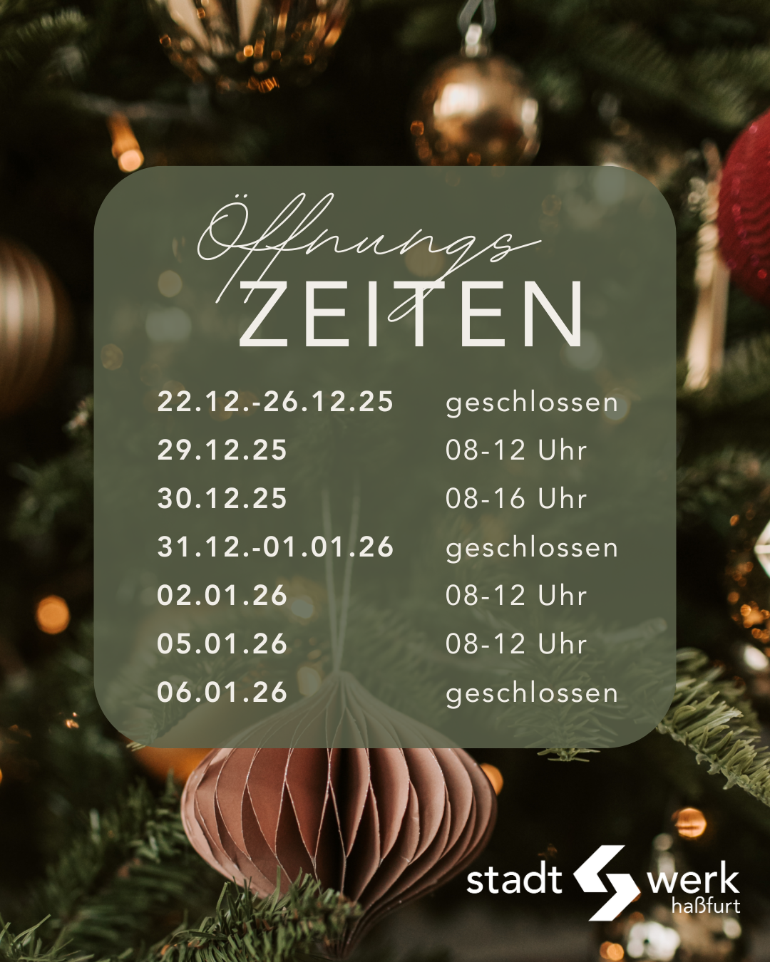 • Öffnungszeiten während den Feiertagen4. Dezember 2025 - 12:01